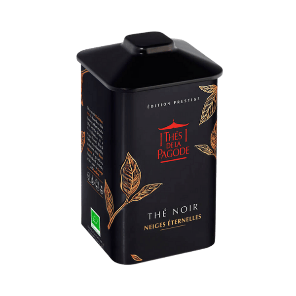 Découvrez le Thé Noir Neiges Éternelles, un thé de Noël biologique, proposé en boîte de 100g. Ce mélange festif associe un thé noir de Ceylan aux notes chaleureuses d’épices comme la cannelle et le clou de girofle, et aux arômes d’orange et de mandarine. Parfait pour vos moments cocooning durant l’hiver, ce thé bio, aux saveurs équilibrées, vous transportera dans l’esprit des fêtes de fin d’année.