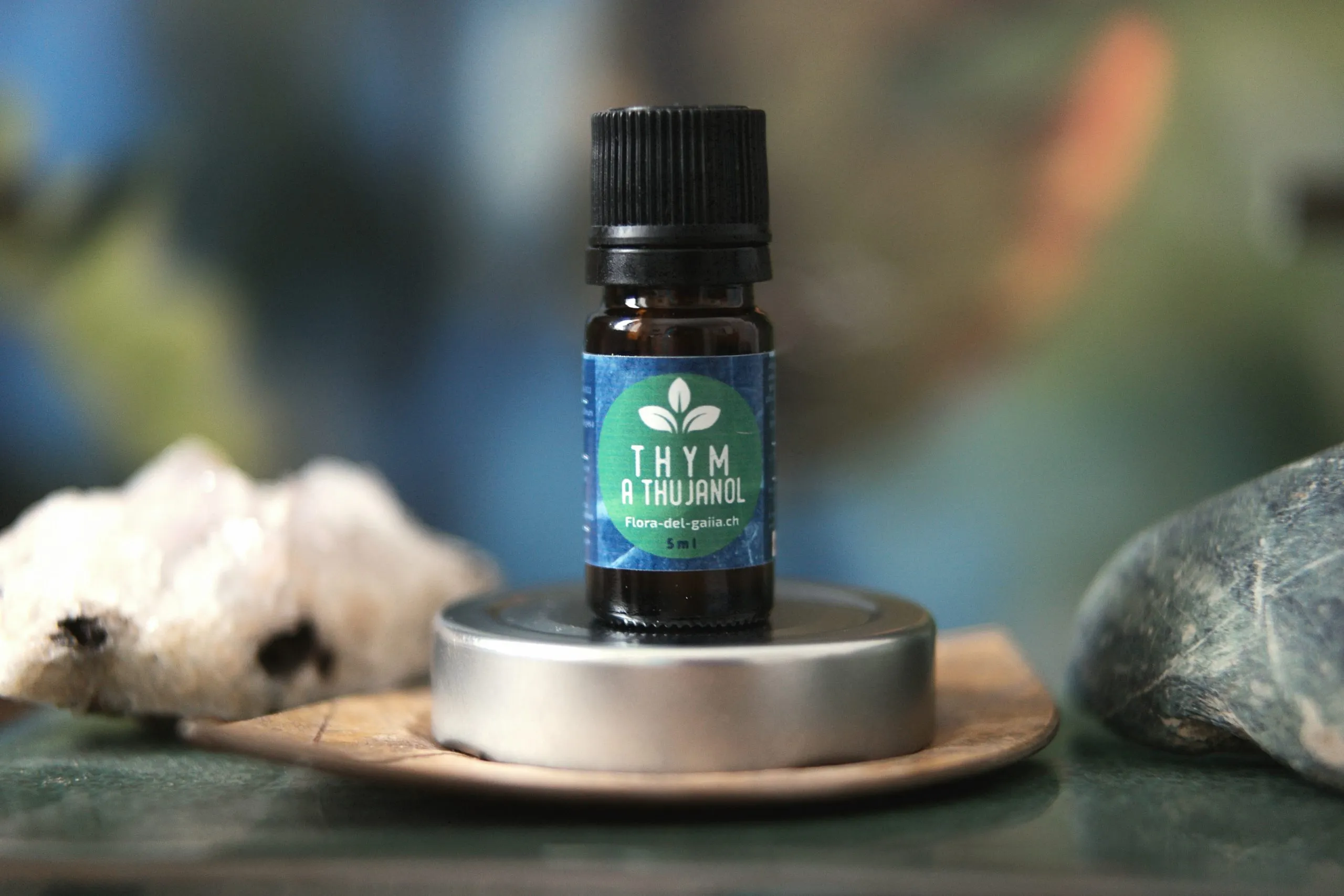 Découvrez notre huile essentielle de Thym à Thujanol (Thymus vulgaris thujanoliferum), distillée artisanalement à partir de sommités fleuries. Ce thym rare, au parfum doux et herbacé, est réputé pour ses bienfaits doux et puissants, idéaux pour soutenir le système immunitaire et apaiser les inconforts respiratoires et ORL.