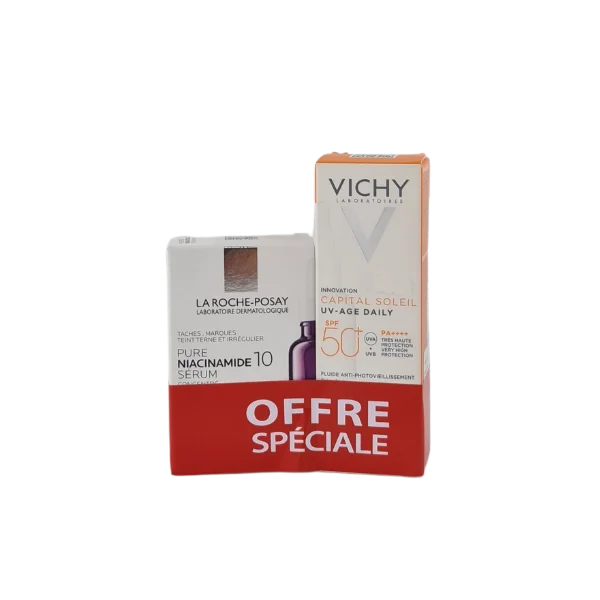 PROTÈGE LA PEAU CONTRE LES UVA ET UVB. PRÉVIENT DES PHOTO-DOMMAGES + LRP SERUM NIACINAMIDE AIDE A REDUIRE LES TACHES BRUNES ET L’HYPERPIGMENTATION.