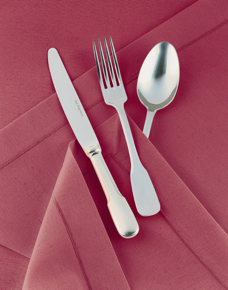 Les couverts VIEUX PARIS SATINÉ de DEGRENNE possèdent une forme traditionnelle qui renvoie à l’atmosphère chaleureuse des bistrots et brasseries françaises. Leur finition satinée se patine avec le temps et en fait un couvert classique idéal au quotidien. Réalisés en acier inoxydable 18%, ces couverts sont faciles d’entretien.