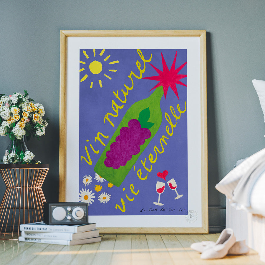 Une idée cadeau originale et déco pour les amateurs de vin. Taille standard 50X70cm, facile à encadrer.