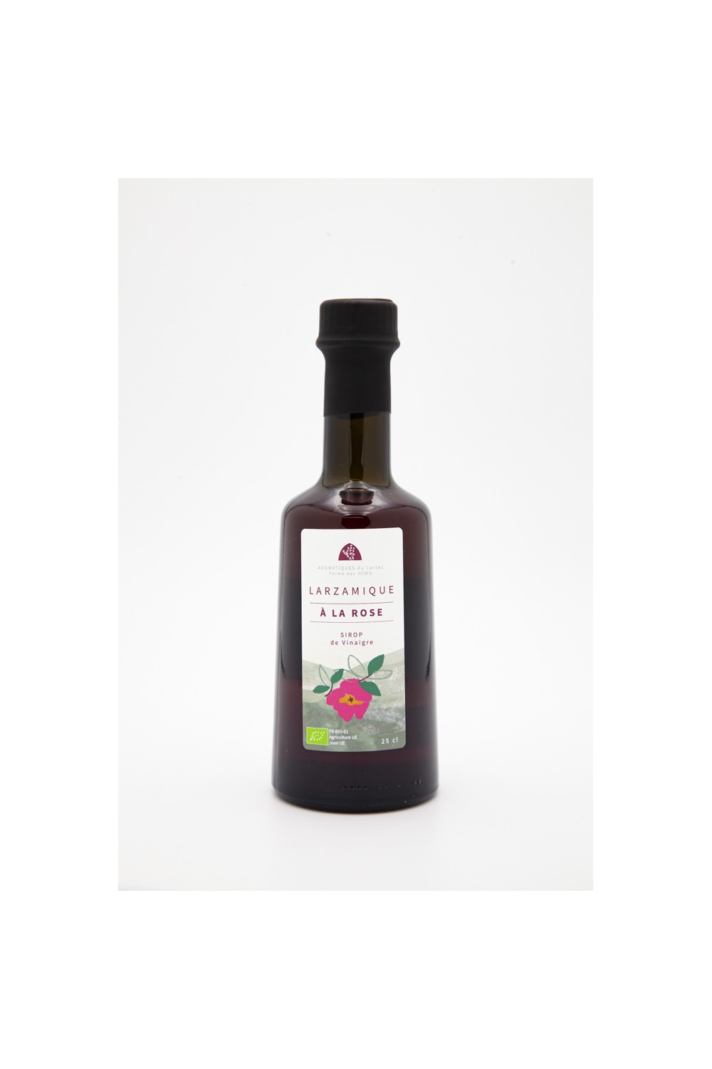 Découvrez le vinaigre larzamique à la rose, une alternative raffinée au vinaigre balsamique. Élaboré à partir de vinaigre de vin blanc bio, de sucre et de pétales de rose, il sublime salades, crudités, fruits et glaces. Quelques gouttes dans de l’eau fraîche en font une boisson désaltérante et florale.