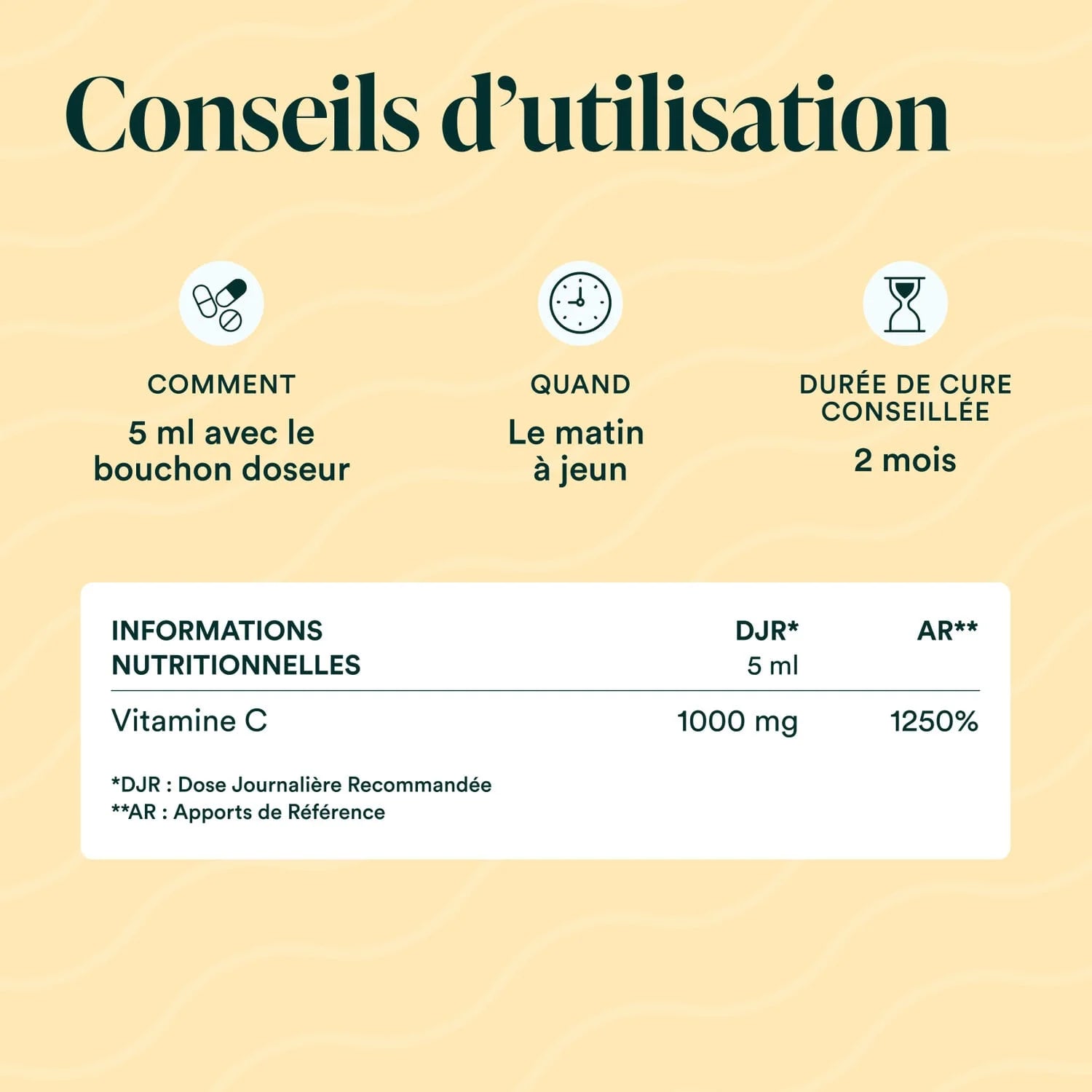 Vitamine C de dernière génération, hautement assimilable et à l’excellente tolérance intestinale. 1000 mg de vitamine C Quali®-C par portion journalière (5 ml).