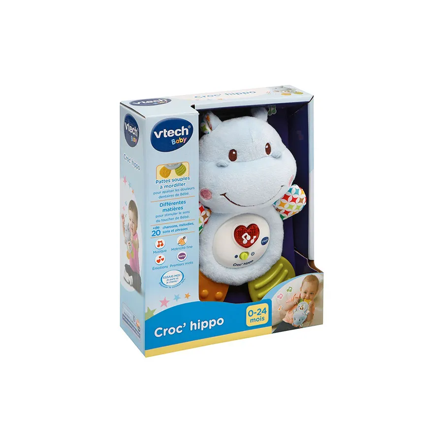 L’hippopotame à croquer de Vtech permet à bébé d’apaiser ses douleurs dentaires et même de se calmer en le calinant. Il deviendra le meilleur ami de votre petit.