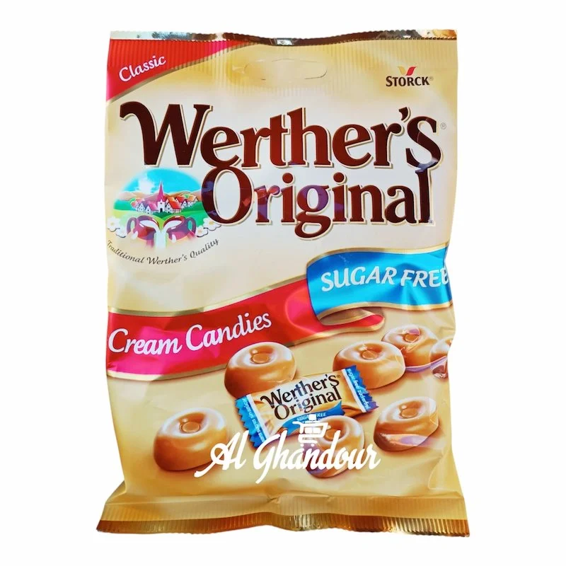 bonbons sans sucre, caramel sans sucre, Werther’s Original, friandise sans sucre, bonbon édulcoré, gourmandise légère, confiserie sans sucre, Alghandour Market Casablanca