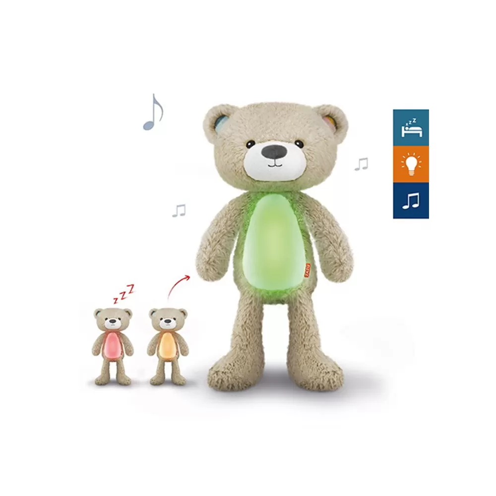 Avec Brody l’ourson de ZaZu, les couchers deviennent un moment de réconfort et les réveils plus doux. Grâce à sa veilleuse apaisante et ses mélodies relaxantes, Brody aide les tout-petits à s’endormir plus facilement. Il diffuse au choix des berceuses, du bruit blanc ou même un coucher de soleil africain pour accompagner votre enfant vers le sommeil en toute sérénité.