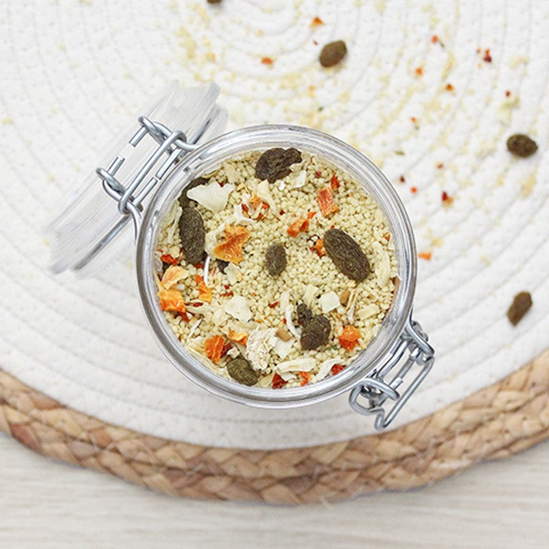 Un mélange prêt à réhydrater aux douces saveurs d’Orient. Conçu à base de grains de couscous français !