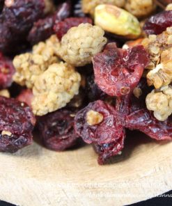 - Texture : Un délicieux mélange de textures, entre le croquant des noisettes et des pistaches, et la douceur des mures blanches et des cranberries.