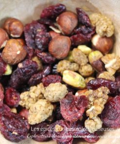 Découvrez l’Assemblage Super Turbo, un mélange audacieux et surprenant de la marque Les Épices Curieuses. Cet assemblage exquis de Cranberrie, Mure blanche, Noisette et Pistache offre un tourbillon de saveurs qui éveilleront vos sens. Sa texture croquante et son goût raffiné confèrent à ce mélange une dimension gustative unique. Le rouge vif de la Cranberrie se mêle à la douceur blanche de la Mure, le tout enrobé par le brun chaud des Noisettes et le vert vibrant des Pistaches. Cette composition renvoie à l’esprit festif des marchés traditionnels d’épices du Moyen-Orient, où se mêlent couleurs, saveurs et senteurs.