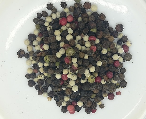 Ingrédients : poivre noir de Madagascar, poivre vert d’Inde, poivre de Jamaïque, poivre blanc d’Indonésie, baies roses de Madagascar